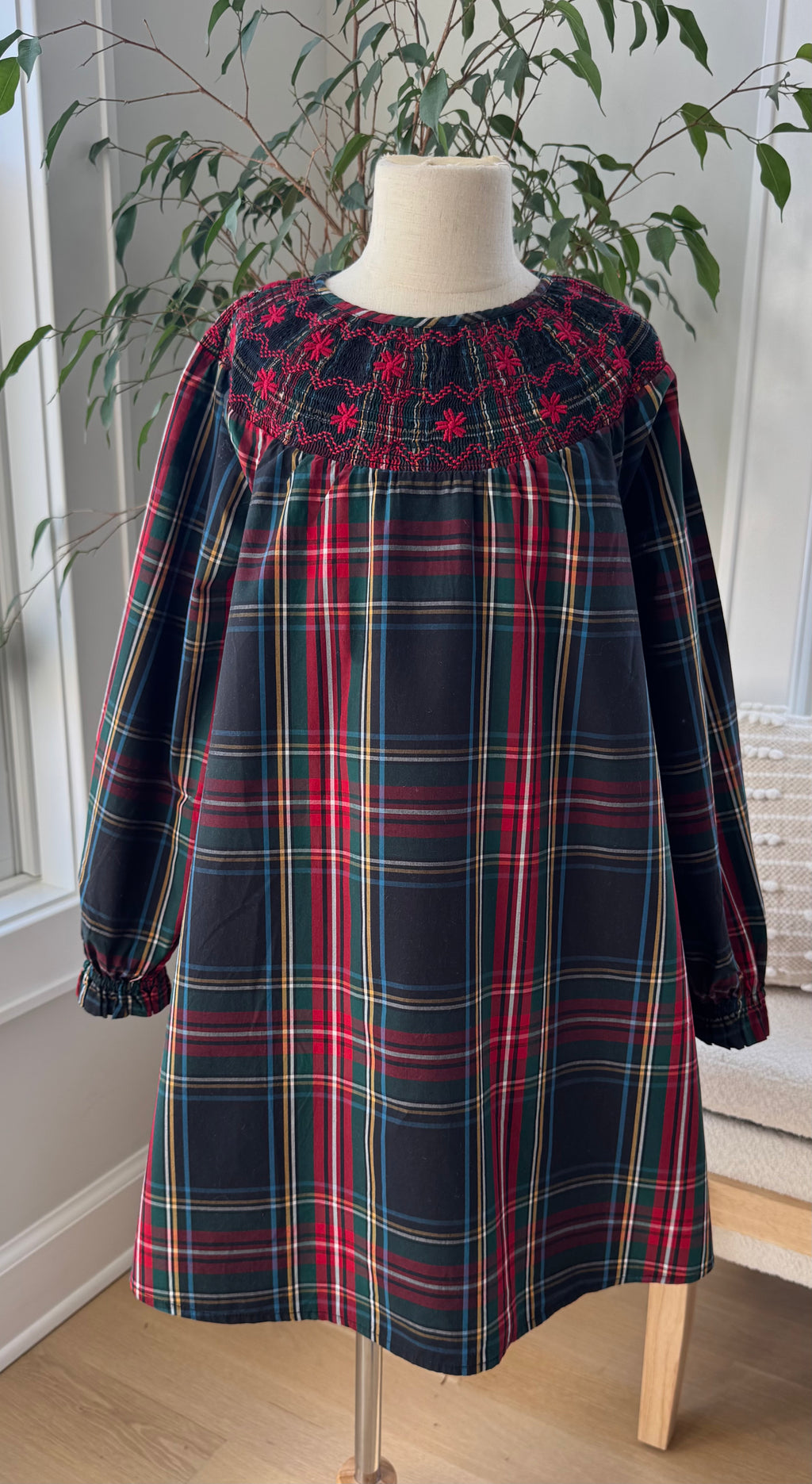 Description : Crewcuts Smocked Embroidered Tartan Dress, Black/Red Girls Size 10