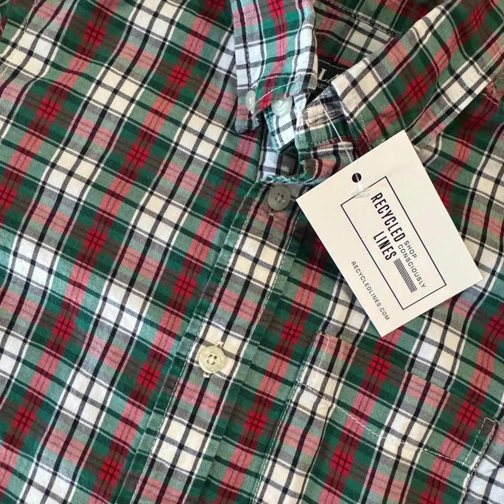 Description : E-Land Plaid Button Down, Cream/Red/Green Boys Size 8