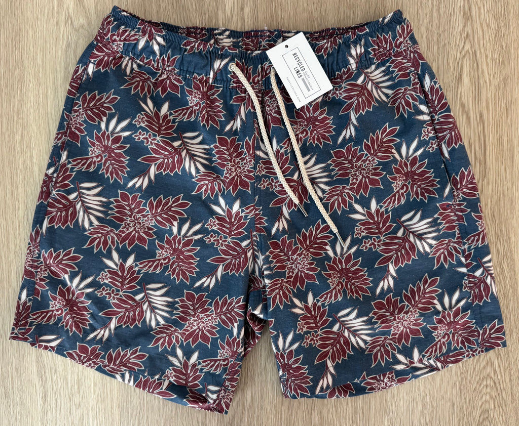 Description : Fair Harbor Fern Bathing Suit, Navy/Maroon Mens Size M?