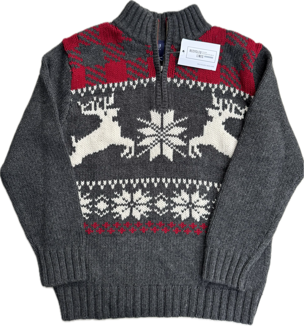 Description : Gap Kids 1/4 Zip Snowflake Sweater, Gray/Red/White Boys Size M (8)