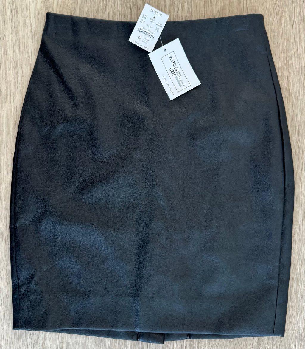 Description : J.Crew NWT Faux Leather Skirt, Black Womens Size 0P