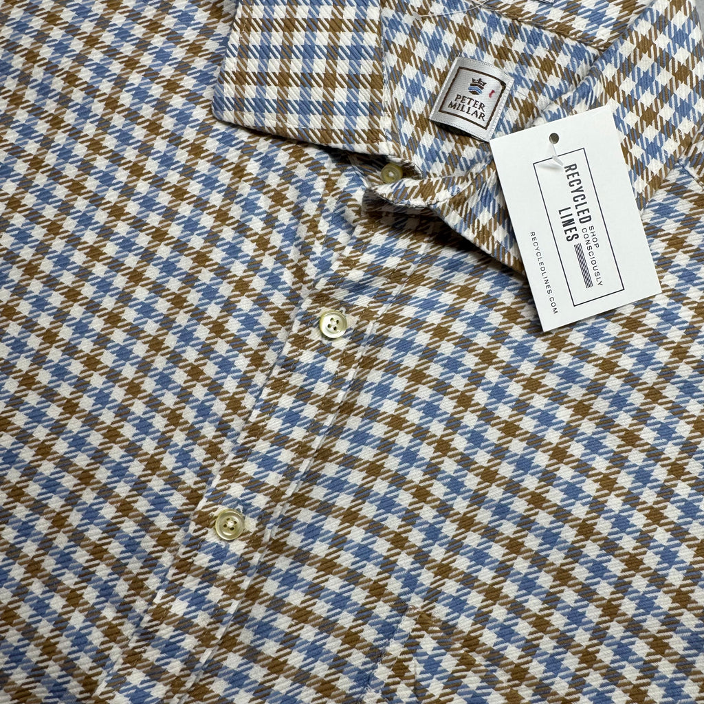 Peter Millar Houndstooth Button Down, Blue/Tan Mens Size XL