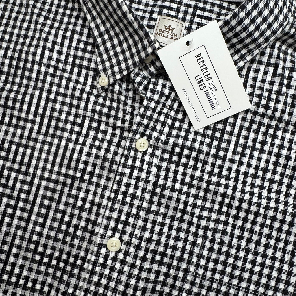 Peter Millar Nanoluxe Button Down, Black/White Mens Size XXL
