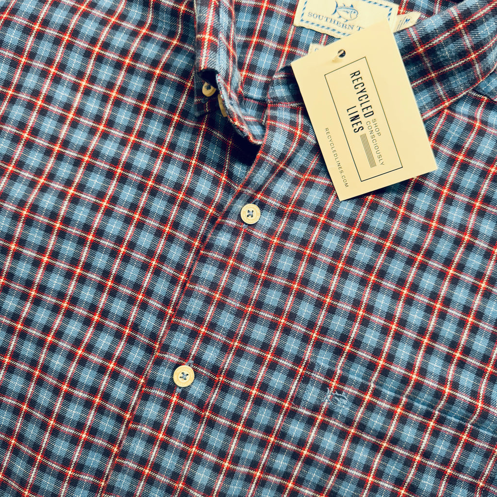 Description : Southern Tide Button Down, Blue/Red Mens Size M