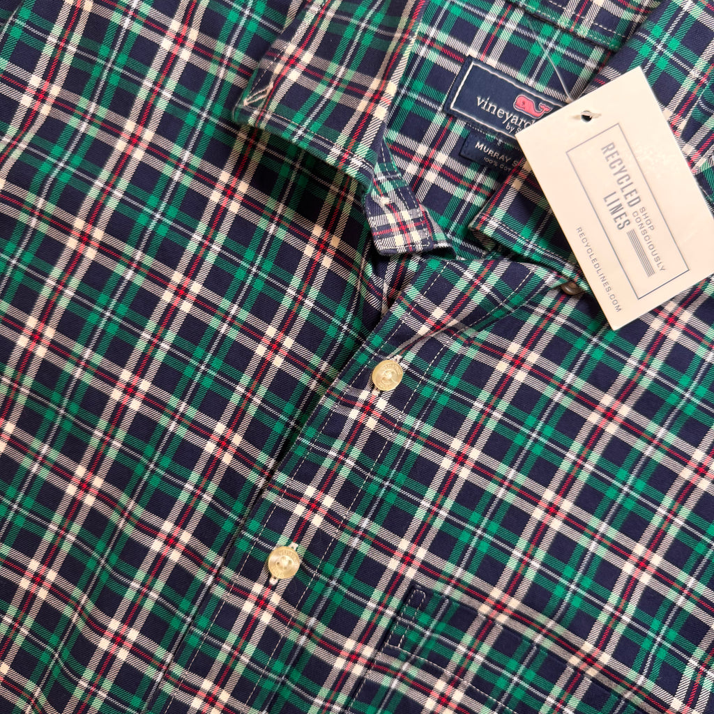 Description : Vineyard Vines Button Down, Green/Navy Plaid Mens Size XS