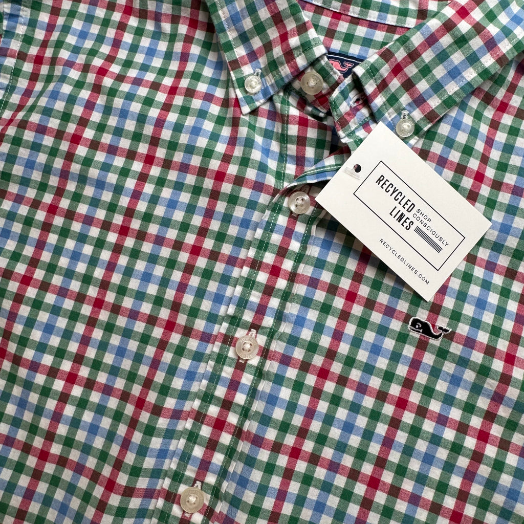 Vineyard Vines Button Down, Green/Red/Blue Boys Size M (12/14)