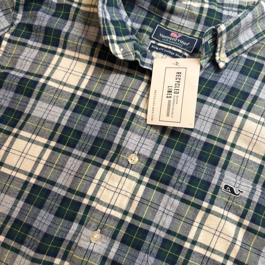 Description : Vineyard Vines Flannel Button Down, Green Plaid Mens Size M