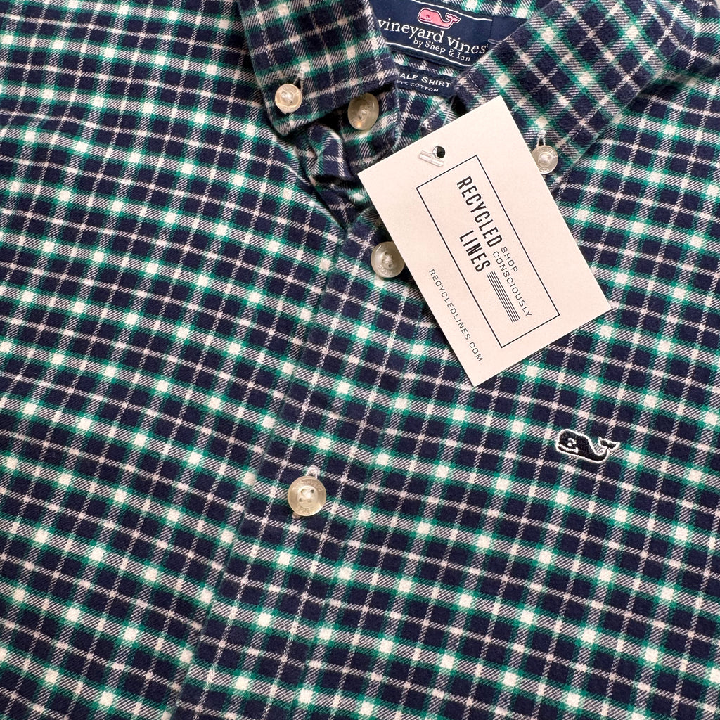 Description : Vineyard Vines Flannel Button Down, Navy/Green Boys Size M (12/14)