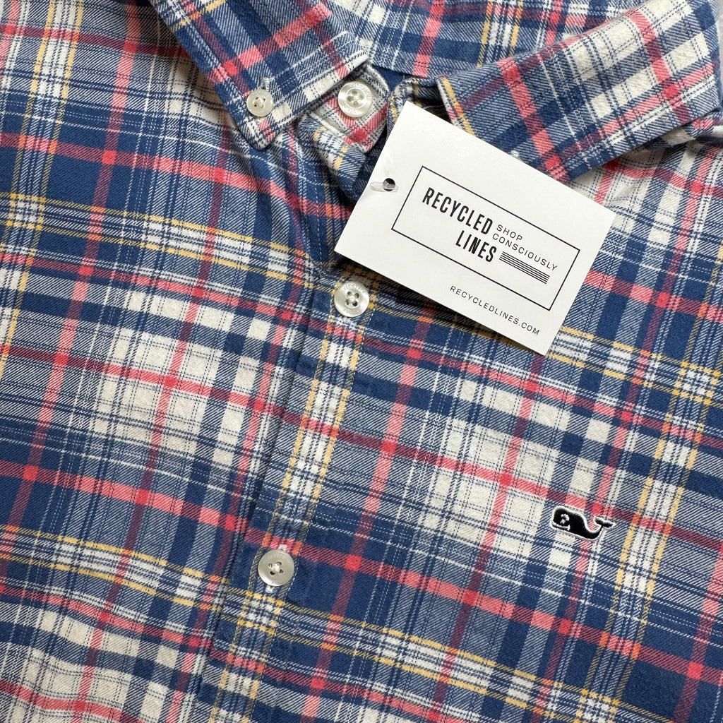 Vineyard Vines Flannel Button Down, Red/Blue Plaid Boys Size L (16)
