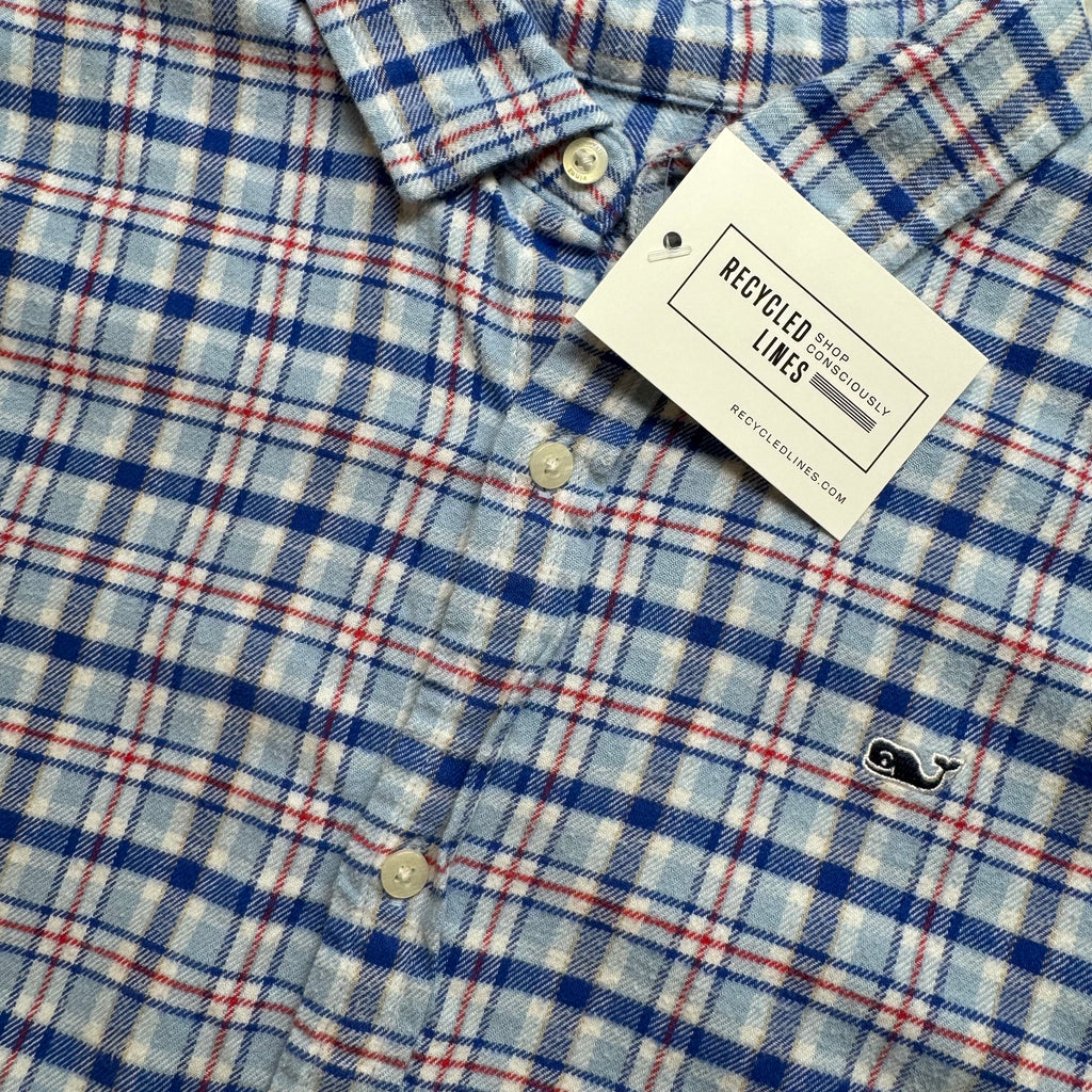Vineyard Vines Flannel Button Down, RWB Boys Size L (16)