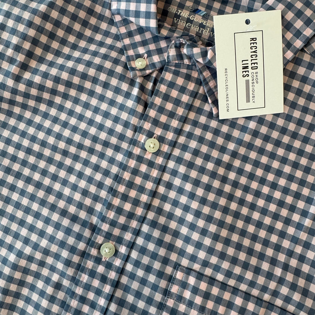 Description : Vineyard Vines Performance Button Down, Blue/Pink Mens Size M